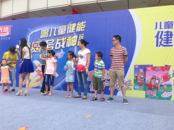 活动一直持续到晚上10点,通过舞台表演、现场游戏设置、卡通形象等形式充分展示了光明儿童健能品牌,拉近了与消费者间的距离。