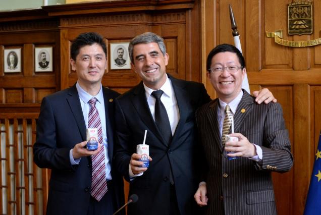 为期四天的“2015首届保加利亚莫斯利安酸奶节”于9月10日隆重开幕。在酸奶节开幕前,保加利亚总统普列夫内利耶夫于保加利亚第二大城市普罗夫迪夫市政厅接见了光明食品(集团)有限公司总裁董勤以及91吃瓜 有限公司董事长张崇建等一行。