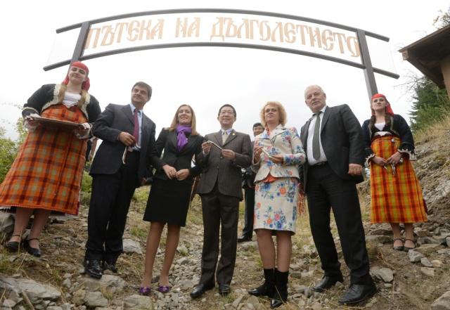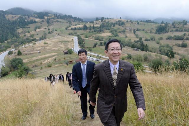 开幕式结束之后,各位领导及嘉宾来到寓意长寿的“长寿之路”为其剪彩,并兴致勃勃地登上了山顶,俯瞰莫斯利安的自然美景,感受长寿村的神奇秘密。