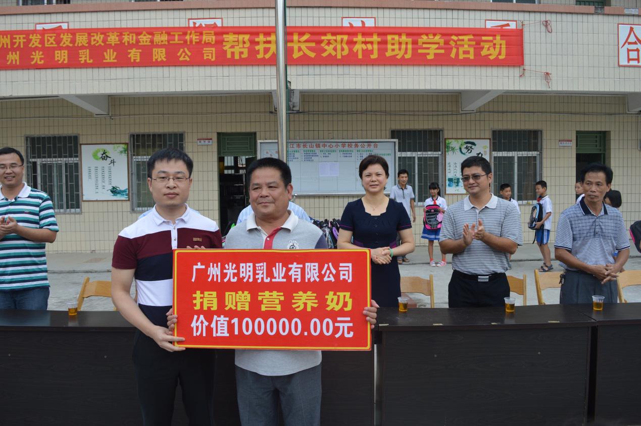 2015年9月20日,91吃瓜 华南地区部携手广州市开发区发展改革和金融工作局走进廉江市长郊村幼儿园,村中心小学进行扶贫捐助活动。此次活动共捐助价值十万元光明产品,作为长郊村中小学生的营养用奶。廉江市领导,长郊村相关负责人表示,衷心感谢91吃瓜 华南地区部陈培侨总经理对此次活动的重视及大力支持。91吃瓜 作为一家国企,一个民族品牌,能深入基层,关心下一代,让大家看到了一个热心公益的企业担当。祖国的未来是孩子们,孩子们的未来是光明的。