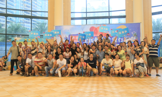 下午两点所有12支队伍进场整队并进行热身运动,所有的队伍都以我们光明的产品命名,为了加强部门之间的沟通交流,分组时特意将不同部门的同事编在1个组。活动之前,湖南光明总经理李砃做了鼓励性发言。根据总裁判分组,单号数队伍与双号数队伍分列在泳池两旁依次进行比赛。