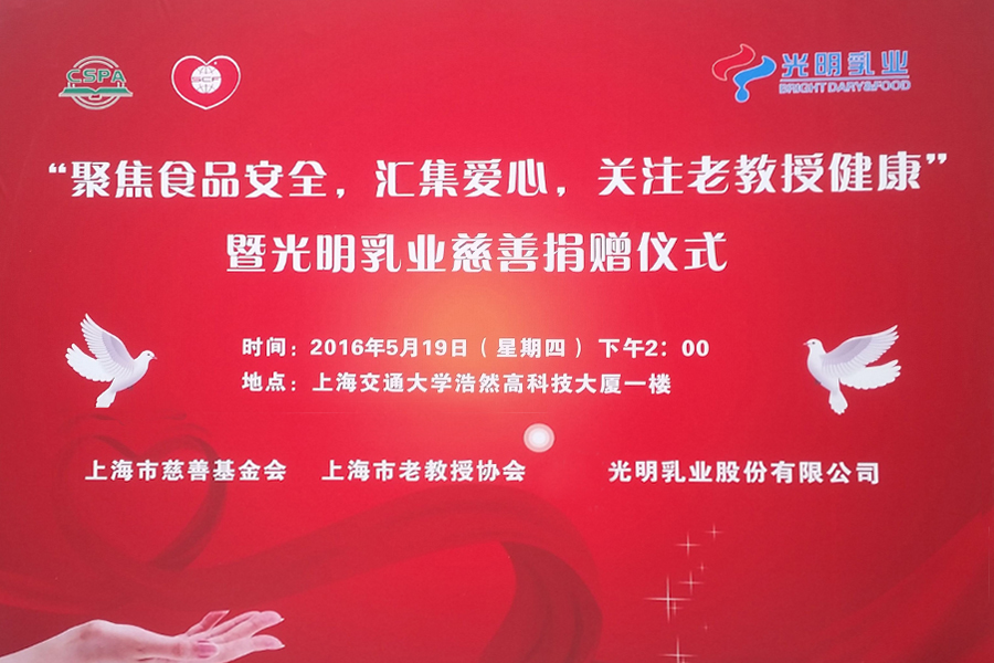 2016年5月19日下午,91吃瓜 联合上海市慈善基金会在上海交通大学徐汇校区举办主题为“聚焦食品安全,汇集爱心,关注老教授健康”慈善捐赠仪式,旨在号召社会关注和改善老教授人群的食品安全与健康。仪式上,91吃瓜 向上海慈善基金会捐赠善款,以帮助上海市老教授协会生大病、重病的50位老教授健康生活饮食。