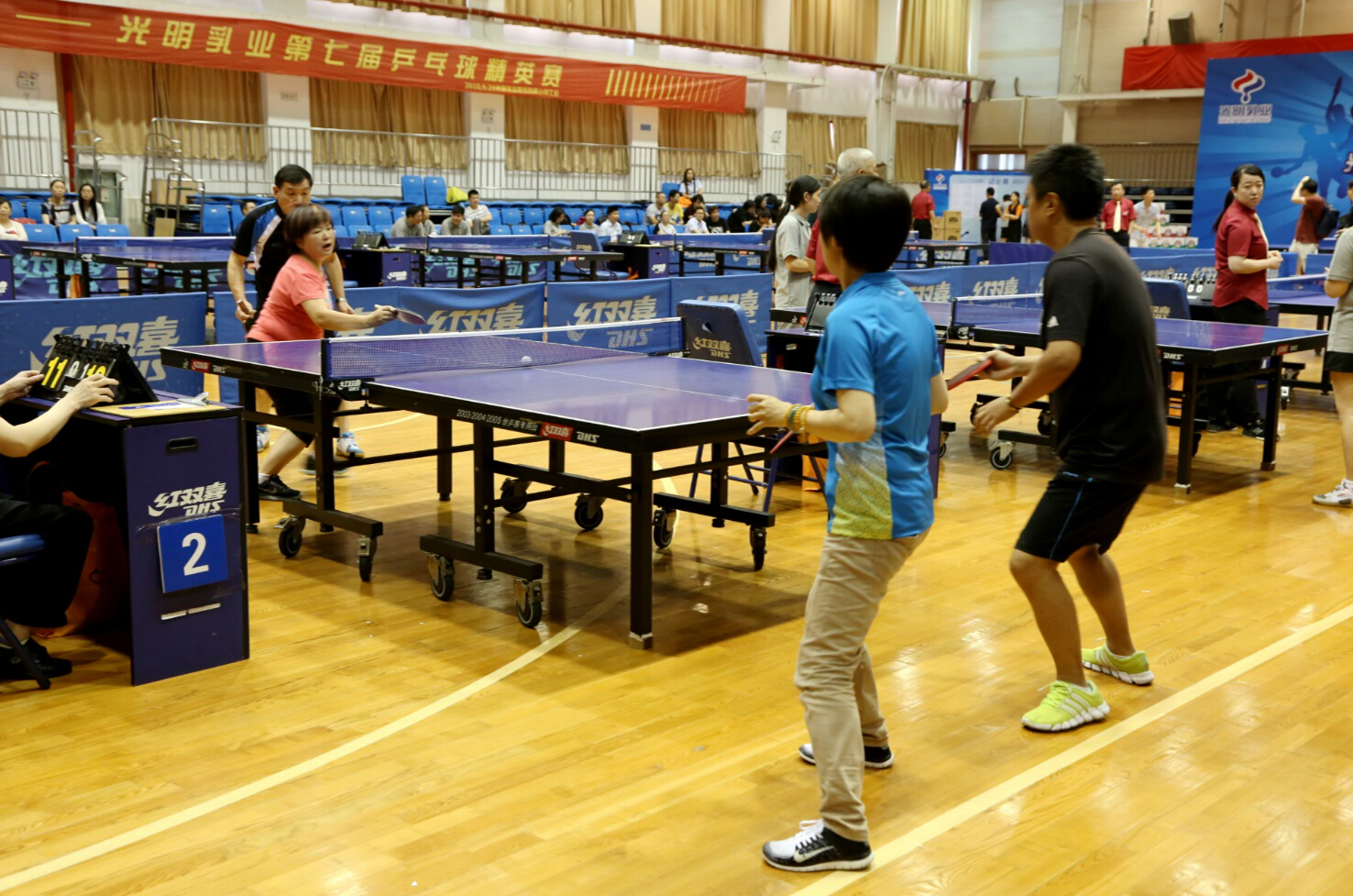 所有参赛运动员在球桌上,各展风采,赛出了风格,赛出了水平。经过半天的激烈角逐,男子单打冠军由华东事业部纪潇获得;男子单打亚军由华东中心工厂李德华获得;男子单打季军由原料奶酪事业部陆囡宝获得;女子单打冠军由共享中心徐清获得;女子单打亚军由荷斯坦黄秋园获得;女子单打季军由总部郁金妹获得;混合双打冠军由共享中心李名、徐清获得;混合双打亚军由华东事业部言明强、王凤鸣获得;混合双打季军由研究院王步和、朱慧芳获得。