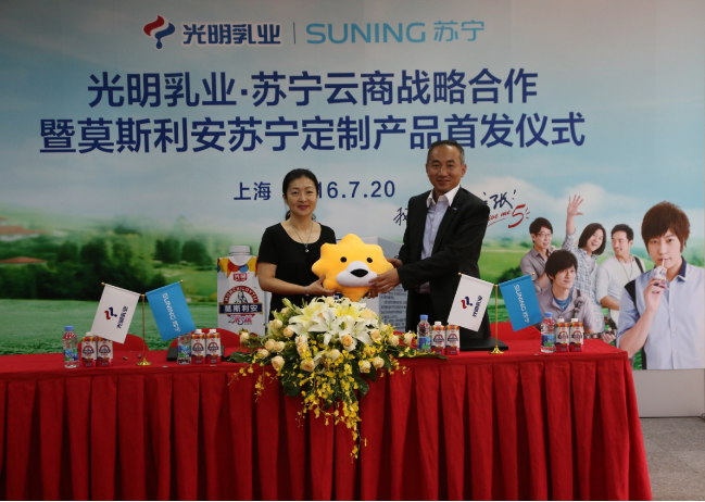 2016年7月20日下午,91吃瓜 副总裁李柯与苏宁云商营销总部副总裁田睿签署战略合作协议,并现场发布苏宁定制款——350g莫斯利安2果3蔬。未来在大的战略合作背景下,双方将共享优势资源,共同完善O2O营销模式,为消费者提供更加便捷的消费服务。