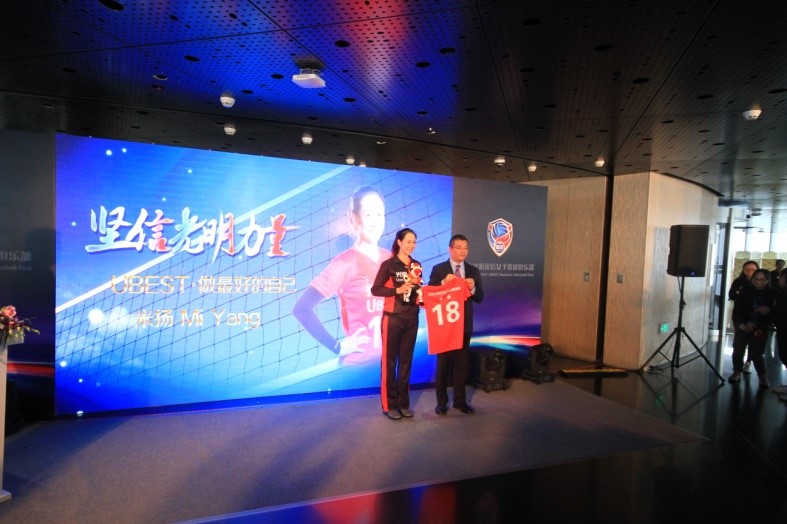 总裁朱航明对光明优倍女排全体队员表示祝贺,中国女排总教练郎平到场对光明优倍女排啦啦队进行慰问。