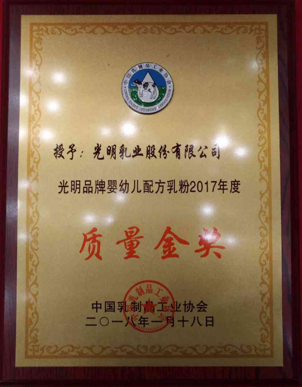 多批次的婴幼儿配方奶粉在接受质量检测后,所有抽检的婴幼儿配方奶粉100%质量合格,会上,荣获中国乳制品协会颁发的“2017年中国主流品牌婴幼儿配方乳粉质量金奖”。