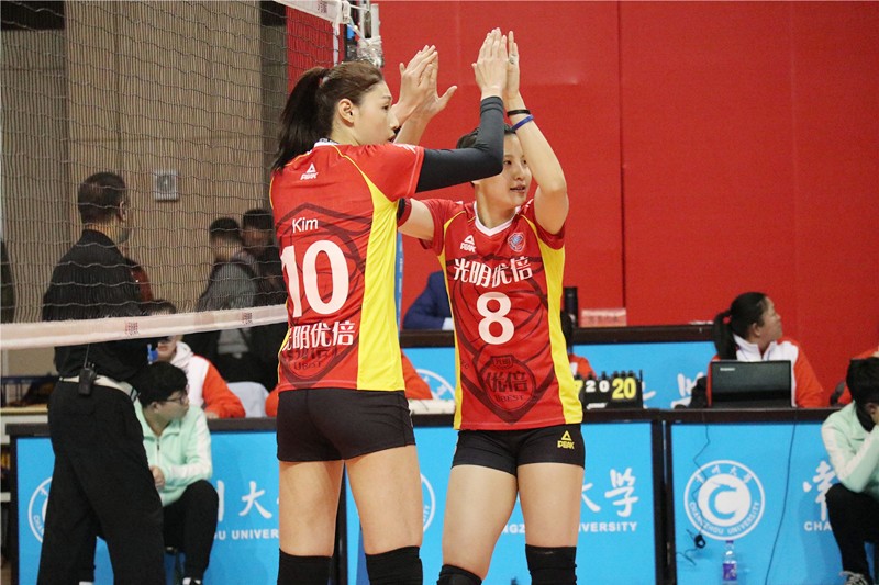 末局曾春蕾2号位出现失误,杨婕4号位推打过网,江苏女排抓住机会取得领先。马蕴雯奋起反击,势大力沉的背飞将比赛推至白热化,5:6上海光明优倍女排落后1分。随后8:5江苏女排领先3分换边,比赛继续。金软景对轰张常宁,双方拼死防守,最终金软景更胜一筹,拿下艰难的一分。张磊2号位连拿2分,9:12上海光明优倍女排领先3分,随后上海光明优倍女排拦网成功,14:9率先抢到赛点,最后依靠对方卧果,15:10拿下末局。