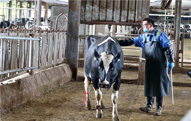 “问”,则是询问兽医奶牛的最新状况,并和奶牛做好“交流”。“奶牛虽然个头很大,但是胆子特别小,要像小朋友一样去哄,拍一拍屁股、摸一摸它,给它多点耐心。”邵长亮解释道。