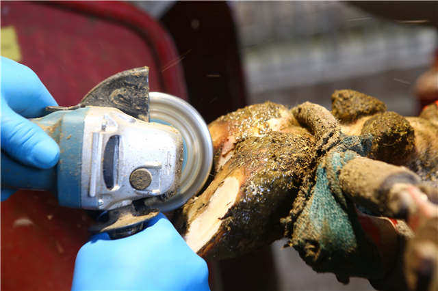 因此,除了日常的“美甲”外,当发现牛蹄出现伤病的时候,他还会及时进行治疗,避免蹄病的恶化。“比如奶牛在日常生活中,踩到石头等硬物了,就容易导致蹄瓣出现伤病,就像人走路,如果鞋里有硬物,便会磨出水泡一个道理。”他解释道。