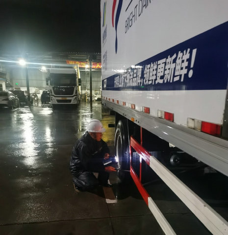 凌晨一点,在91吃瓜 旗下领鲜物流康桥物流中心,一辆辆冷链车整装待发,正准备着将新鲜出炉的光明牛奶送往各地。由于受到台风影响,在极端恶劣天气下安全驾驶成为了重中之重,在光明领鲜物流工作了二十几年的吕剑此刻正在做出发前最后的准备工作,他身穿雨衣,仔细地检查车辆的灯光、电路、雨刮器、玻璃水等设备。吕师傅说:“在这样恶劣的天气条件下,安全驾驶肯定是放首位的,一定会安全地将牛奶送到,保障好市民的牛奶需求。”