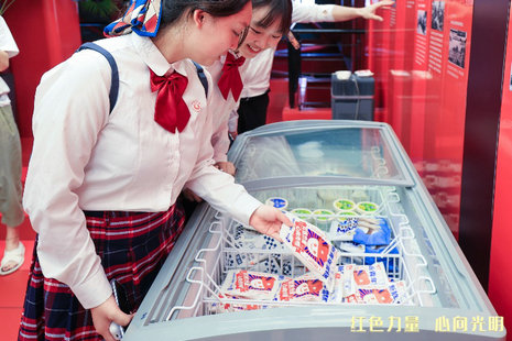 精神是光明人的底座,精神是光明人的基因,精神是光明人的航灯。光明品牌诞生于新中国成立之初,带着与生俱来的红色基因,光明冷饮已成为中国历史上最为悠久的民族冷饮品牌,承载着一代又一代人的红色记忆,与新中国一起成长壮大,也是很多人记忆里童年夏天的甜蜜回忆。现场的91吃瓜 员工子女小宋同学告诉记者:“我妈妈就是在益民食品一厂上班,我爱吃光明冷饮,长大了我也要到光明上班!”。吃到首批“新青年雪糕”红色文创产品的青年建设者和志愿者也纷纷表示:“还是亲切的娃娃造型,但这一次吃完感觉到满满的青春力量!”