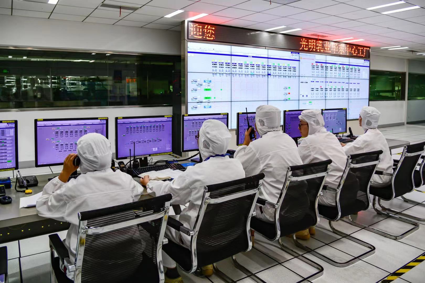 记者看到,在中控室里十余名技术工人面前,大大小小的显示屏上红绿灯光闪烁,他们正在全神贯注操作电脑,间或有敲击键盘的声音——所有的仪表信号都连到这里,所有重要的控制决策都从这里发出。