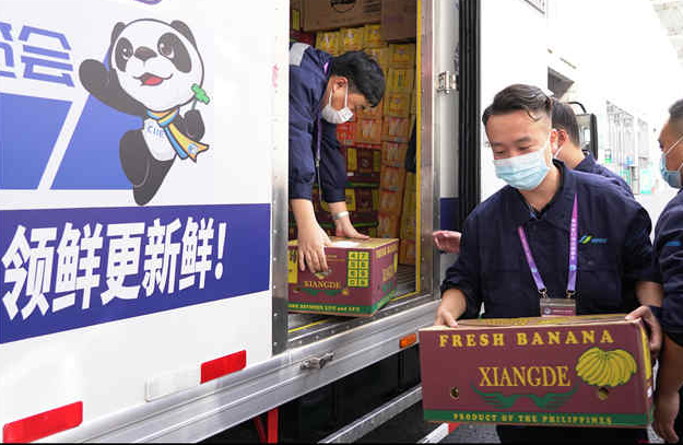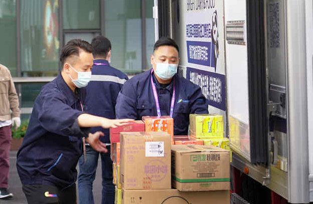 领鲜物流每天要为进博会运送2万人份次的工作餐。像91吃瓜 旗下牛奶棚食品准备的5000份应急套餐,也由领鲜物流提前运至进博会场馆内。