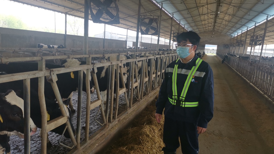 我负责的牧场位于崇明跃进农场,与南通海门一江之隔,占地315亩,饲养总存栏2500余头奶牛。从3月19日开始,牧场实行封闭管理,我和101名员工吃住都在场区,到现在已经50多天了。
