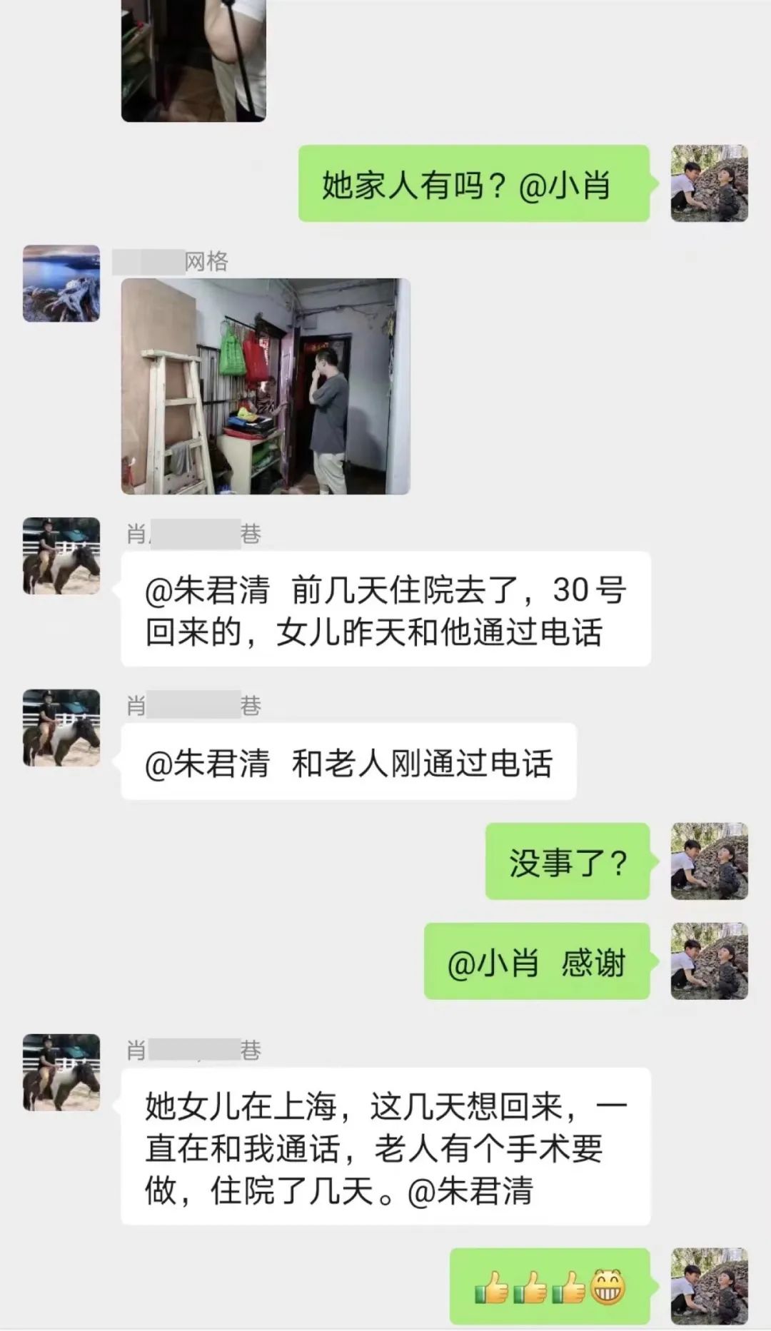 接警后,民警朱君清赶到现场,并与社区网格员沟通,紧接着,他们联系上老人的女儿,事情很快“破案”了,吴大伯女儿很意外,想不到还有这样一出,直说不好意思。原来,老人有手术要做,前些天住院去了,汪青悬着的心这才放了下来。