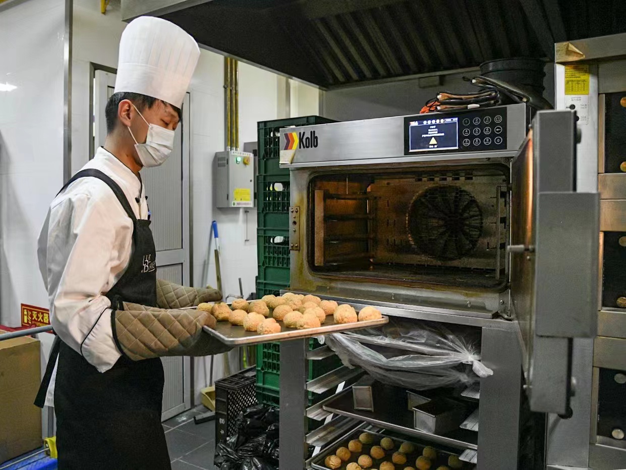 烘焙也有细分领域。有趣的是,原本专攻蛋糕领域的王师傅,在拓宽技能学习了面包烘焙后,发现制作面包“更有意思”。