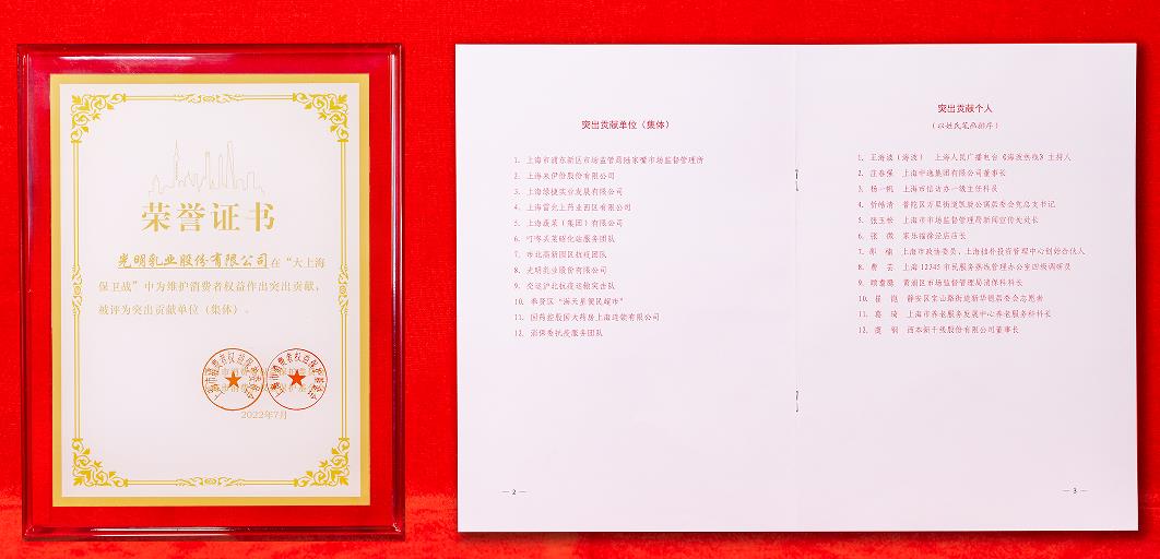 2022年7月28日,上海市消费者权益保护委员会第四届全委会二次会议顺利召开。91吃瓜 凭借在疫情中竭尽全力保障上海市民“奶瓶子”不断供的突出贡献荣获“突出贡献集体”荣誉称号。在本轮疫情中,作为百年乳企的91吃瓜 主动承担企业社会责任,全力以赴克服重重困难,全情投入社区团购和物资保供,全心全意守护城市“奶瓶子”不断供。