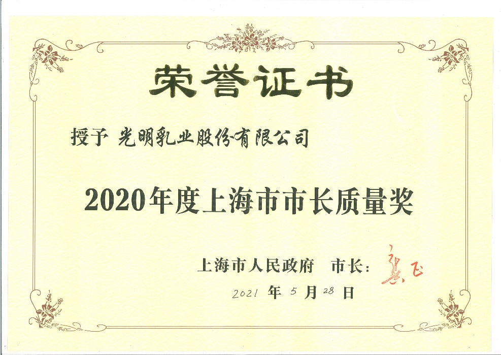 “光明牛奶随心订服务”荣获首批“上海品牌”服务认证。2020年光明优倍鲜牛奶获得“上海品牌”产品认证。2022年“光明牛奶随心订服务”再次入选十大“上海品牌”卓越贡献品牌。