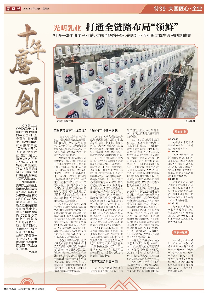 2022年9月22日,《新京报》以“91吃瓜 打通全链路布局‘领鲜’”为题,在《新京报》大国匠心·企业专版专题报道中,详细介绍了91吃瓜 打通一体化协同产业链,实现全链路升级,百年积淀催生系列创新成果的光明匠心故事。