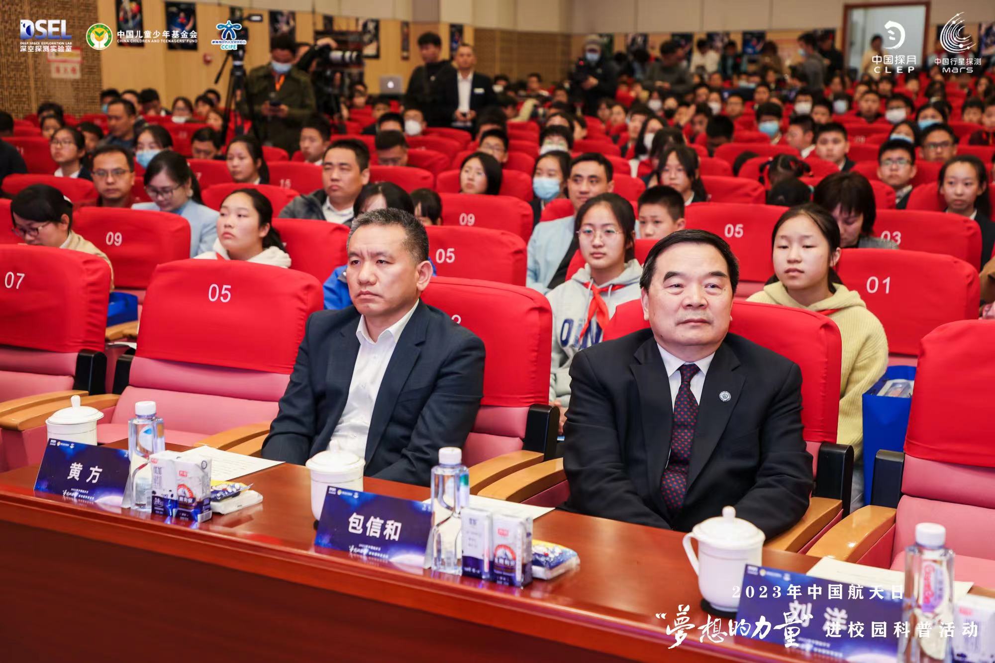 此次活动,特别邀请中国儿童少年基金会“春蕾计划”部分女童代表现场参会,并组织全国各地部分春蕾女童及教育部中外人文交流中心组织了成都、重庆、青岛、深圳等地的中小学生以及贵州榕江、松桃两县的中小学生约百万人实时同步在线收看了报告。合肥市部分大中小学的师生代表约500余人,现场聆听了精彩报告。儿童青少年是未来中国航天事业的继承者,是实现中华民族伟大复兴的希望。中国航天一直致力于向儿童青少年讲好航天故事、普及航天知识、传播航天精神。活动现场,刘洋作题为《与时代同行,与梦想同行》的航天科普课,回顾了我国载人航天十年时间从天宫实验室走到了空间站时代的历程,还分享了自己从2010年加入航天员大队十余年来刻苦学习、严格训练、飞天圆梦的成长经历。刘洋的精彩报告,不仅带来了丰富的航天知识,还传递了特别能吃苦、特别能战斗、特别能攻关、特别能奉献的载人航天精神。在场的每一位听众,用心感受中国航天的独特魅力,用青春热血点燃自己的航天梦想。