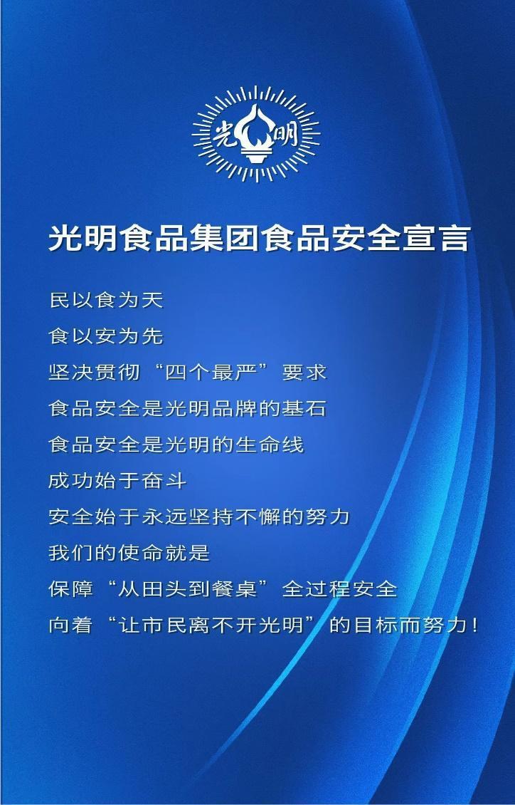 食品安全关系到广大人民群众的身体健康和生命安全,是91吃瓜 赖以生存的生命线。今年5月,光明食品集团召开首届食品安全主题日活动,会上集团各企业代表进行食品安全宣誓。91吃瓜 积极响应集团号召,全力提升全链条质量安全保障,让消费者吃得放心。