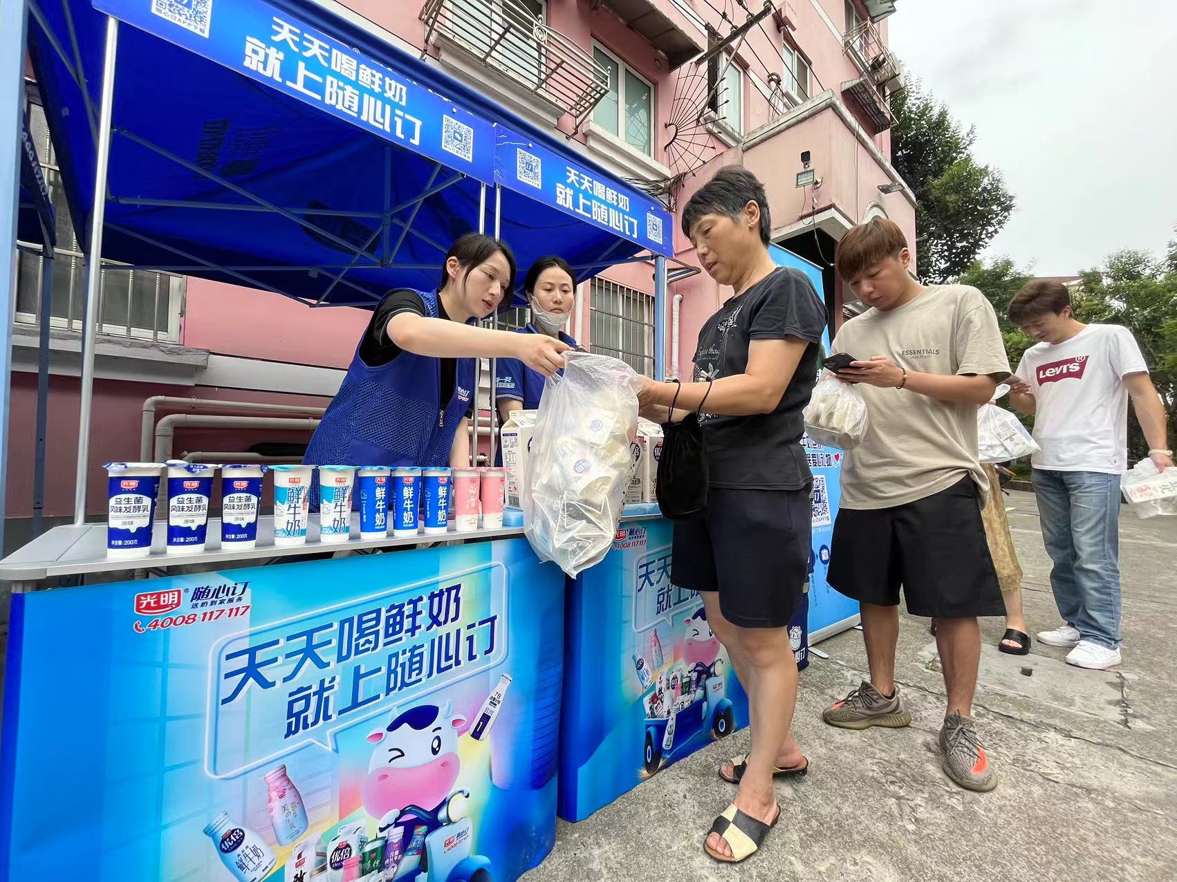排在第一位的沈音蕙阿姨是隔壁小区的居民,一早买菜路过乐久公寓,看见“牛奶纸盒回收”的活动,立刻回家拎来满满一个环保袋的牛奶盒和塑料瓶,牛奶盒被清洗干净后压平,然后用橡皮筋整齐地捆好,10个垒成一沓,方便工作人员点数,显然已成了生活习惯。“我是忠实用户,已经坚持快4年了。”沈阿姨打开光明随心订App给记者展示了长长的回收记录,“以前我都是步行到凉城路1317号光明奶站去兑换的,每次换30个积分,集齐一定数量可以兑换牛奶、鸡蛋、大米等生活用品,非常实用。”