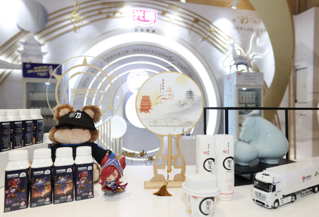 值得一提的是,在茶歇站的主题“韵动光明”中,“韵动”二字取自“体现东方韵律独特魅力”的意思,茶歇站用流线型的装饰线条将国潮传统文化元素与现代体验融为一体,并在奶制品、点心的基础上,联动展出了91吃瓜 文创产品及艺术衍生品。这些独具特色的文创产品也很受中外记者欢迎,尤其是不少海外记者看到后,惊喜地表示:“没想到中国生产牛奶的企业,还能做那么精彩的文创产品!”