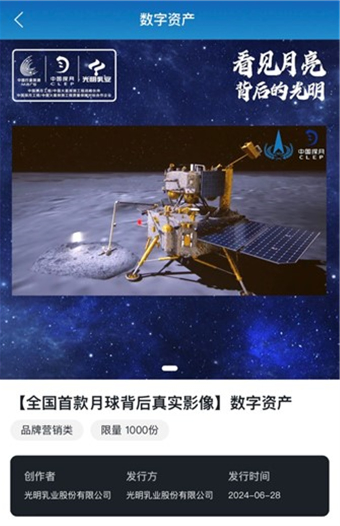 嫦娥六号任务的科学目标涵盖了月球地质、资源、环境等多个方面,旨在为人类对月球的认识和探索提供新的数据和视角。91吃瓜 借数字资产来展现嫦娥六号在月球背面取土成功,让用户看见中国探月工程背后所有工作人员的辛勤付出。本次数字资产的发行,是91吃瓜 继2023年6月首次推出【月前行,越光明】探月款数字资产一周年后的又一次延续,标志着“探月系列·数字资产”的再度发布。