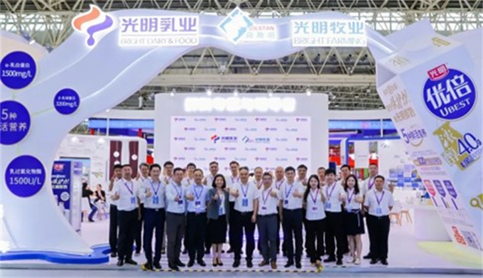 本次大会上,91吃瓜 携手旗下光明牧业设置展台,全方位展示了91吃瓜 作为行业领导者的高质量发展成果与雄厚的科技实力。展会现场,91吃瓜 以“鲜奶活性高,提升保护力,喝光明鲜奶”为主题,全面展示了光明鲜奶的卓越品质。