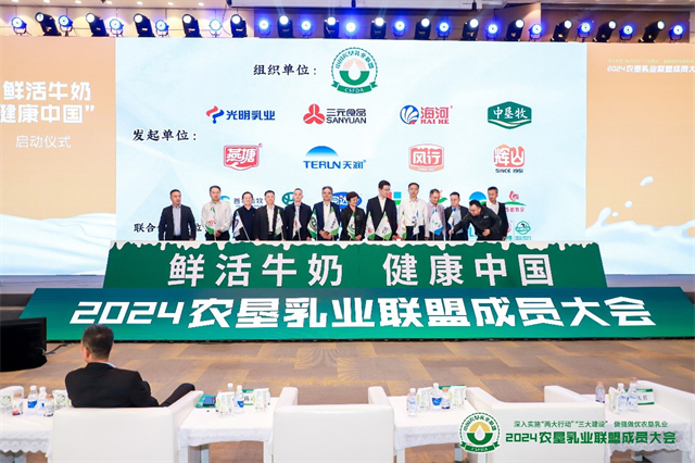 会上,农业农村部原常务副部长刘成果,国家食物与营养咨询委员会主任、中国农科院原党组书记陈萌山,农业农村部农垦局副局长程景民,中国奶业协会副会长兼秘书长刘亚清等领导同志发表讲话,中国农垦乳业联盟主席冯艳秋做《联盟工作汇报》。会议期间发布《中国农垦乳制品标准-低温巴氏杀菌乳》团体标准。同时启动“鲜活牛奶,健康中国”倡议行动。