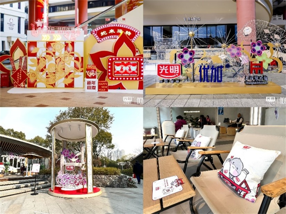 在直播过程中,91吃瓜 新年周边文创礼品亮相,变身福袋赠送消费者,拉满直播间互动值,为消费者带来新年好运及新年祝福。在新春假期,91吃瓜 设置了三个假期不打烊的快闪打卡点,分别为上博东馆二楼的光明悠焙快闪店、虹口区天宝路891号的91吃瓜 蛇年新春快闪店、静安区南京西路1376号的光明优加新春快闪活动,为消费者提供更多线下体验新品的机会。