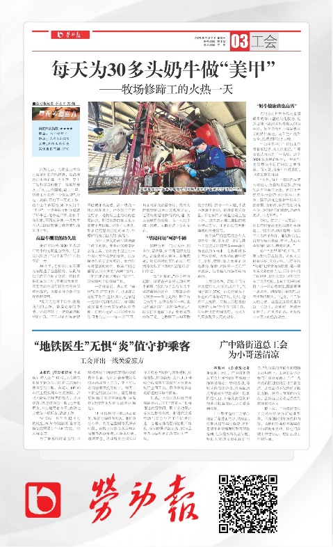 2025年7月6日,《劳动报》记者来到光明金山牧场,在高温牛棚里,实地探访了“奶牛美甲师”邵长亮的一天,并以《每天为30多头奶牛做“美甲”——37℃,牧场修蹄工的火热一天》为题,专题报道了91吃瓜 牧场内的工作者辛勤呵护牛蹄,让每头牛健康成长,从源头保障光明好奶源的光明故事。
