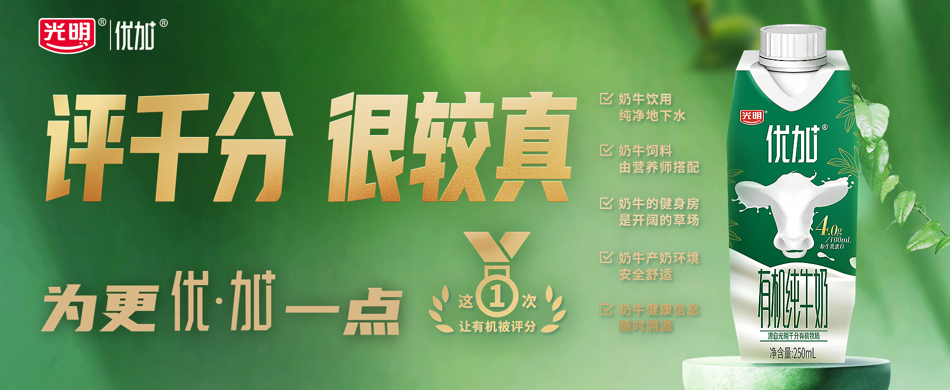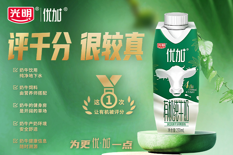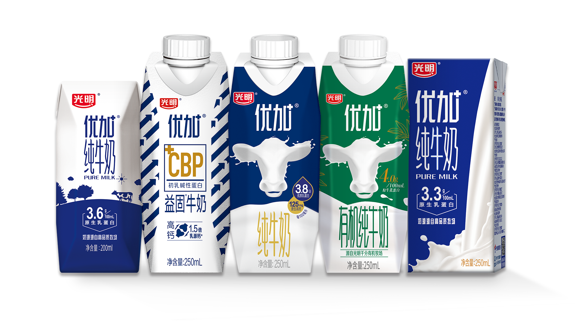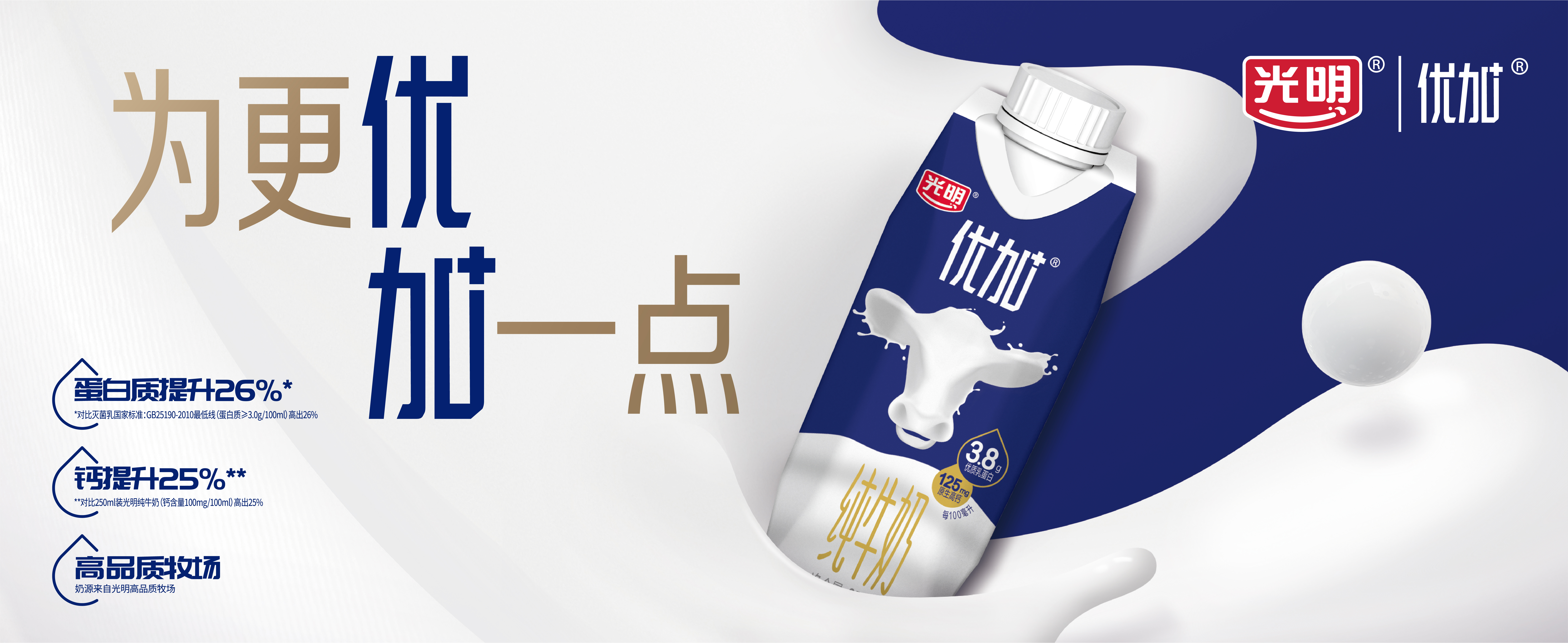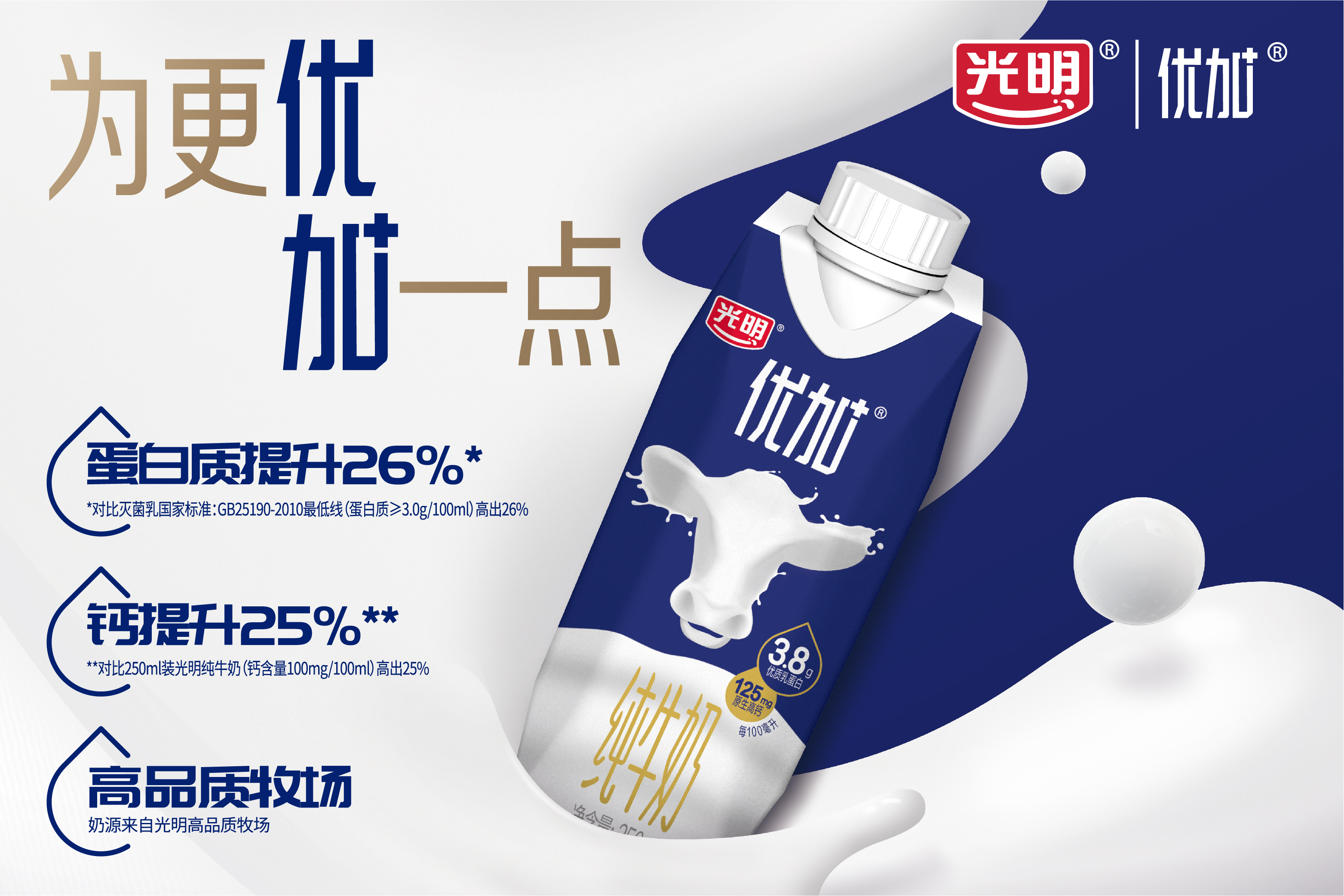 光明优加牛奶,更多原生蛋白、原生钙,乳源源自高品质牧场,用更优营养陪你一起奔赴未来,一起“为更优,加一点”