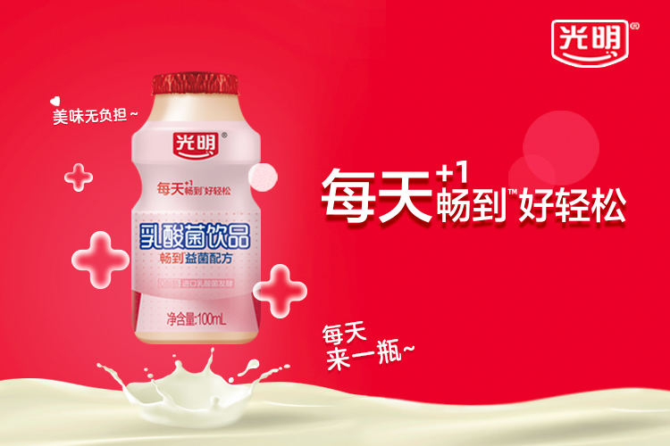光明乳酸菌饮品,采用光明优质奶源,5种乳酸菌发酵,0脂肪。口感清爽酸甜,每天来一瓶,美味无负担!