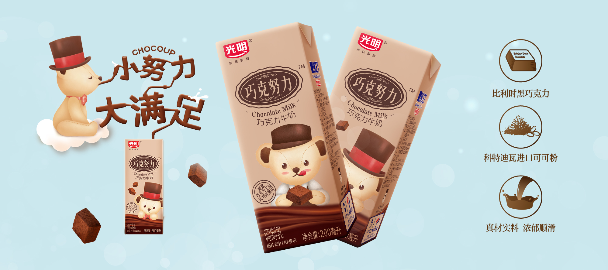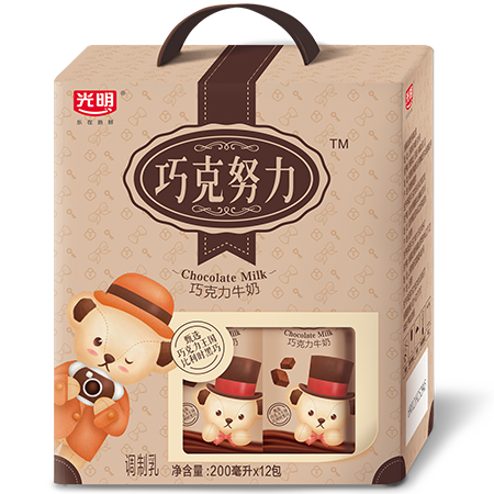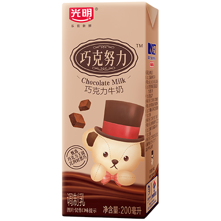 光明巧克努力200ml巧克力牛奶,由比利时进口黑巧克力、“象牙海岸”科特迪瓦的可可粉与优质奶源完美搭配,口感香浓、滴滴醇厚,随时随地满足你对美味的追求
