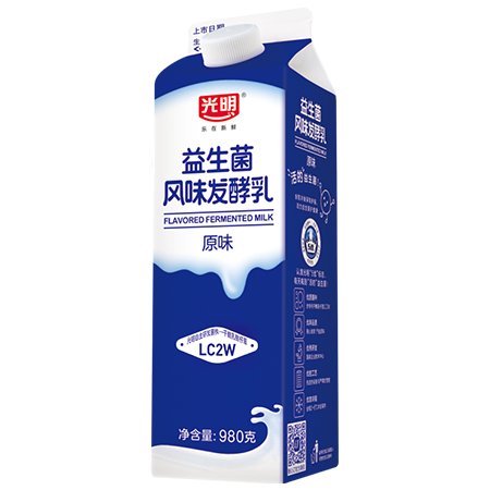 光明益生菌风味发酵乳系列,特别添加光明自主研发菌株——干酪乳酪杆菌LC2W,呵护健康,满足大众人群日常饮用和家庭营养需要。